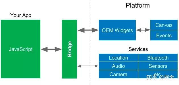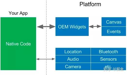 第一个跨平台框架基于 JavaScript 和 WebViews。 例如 Titanium 和一系列相关的框架:PhoneGap,Apache Cordova,Ionic 等等。 在苹果发布 iOS SDK 之前,他们鼓励第三方开发者为 iPhone 构建 webapps,所以用 web 技术构建跨平台的应用程序是一个显而易见的步骤。